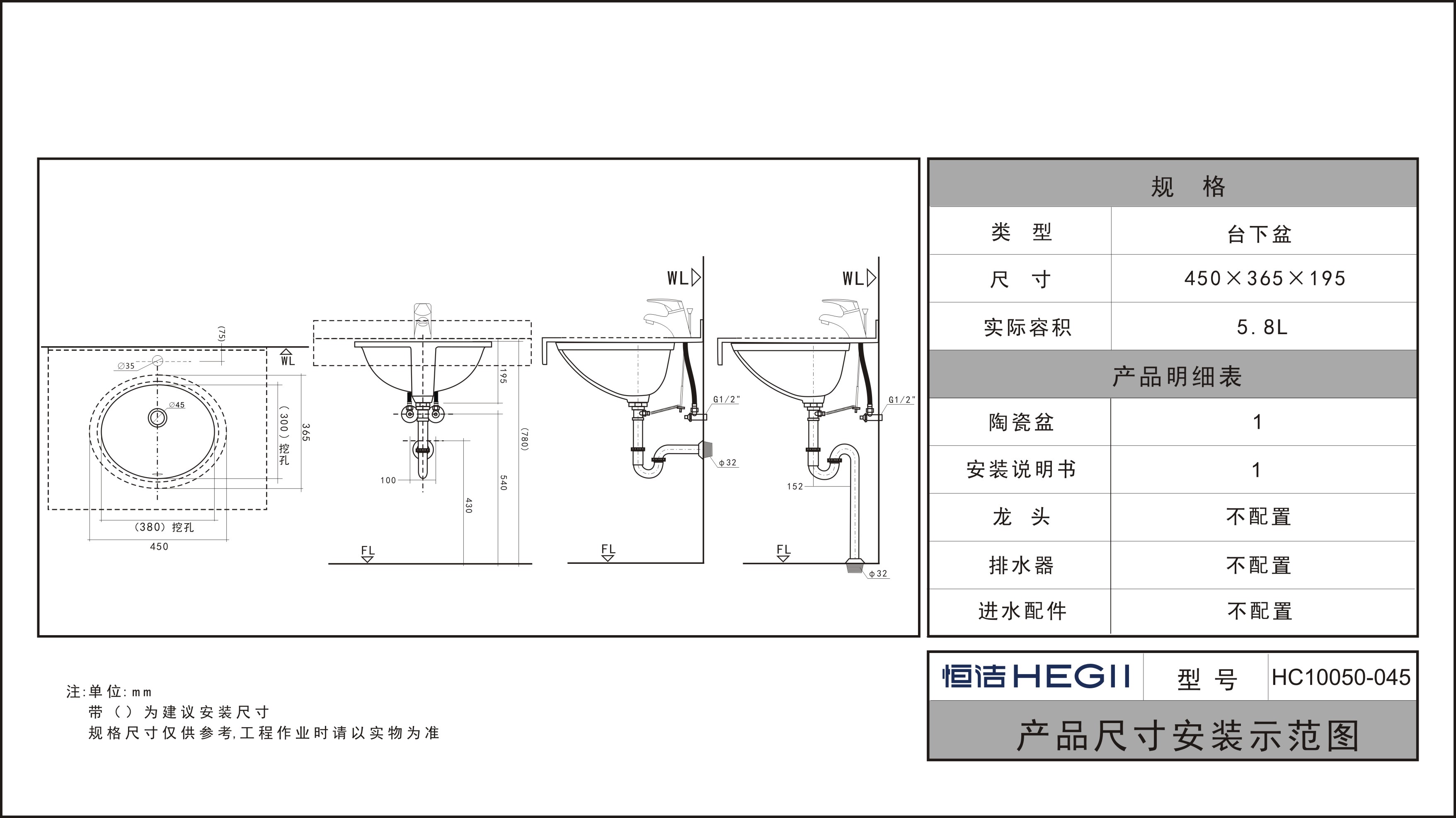 HC10050-045圓形臺下盆